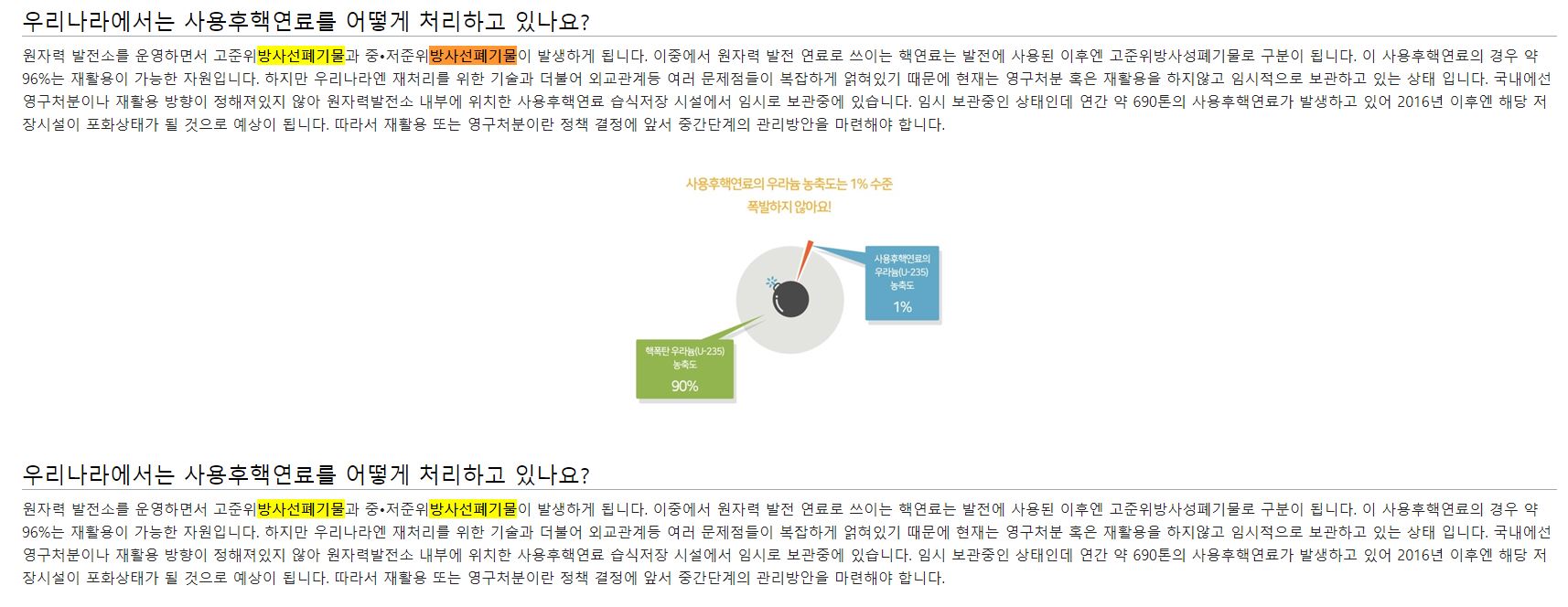 따라서 아래 링크 내의 설명 중'방사선 폐기물'로 오표기된 용어를 ‘방사성 폐기물’로 수정하는 것을 제안드립니다.